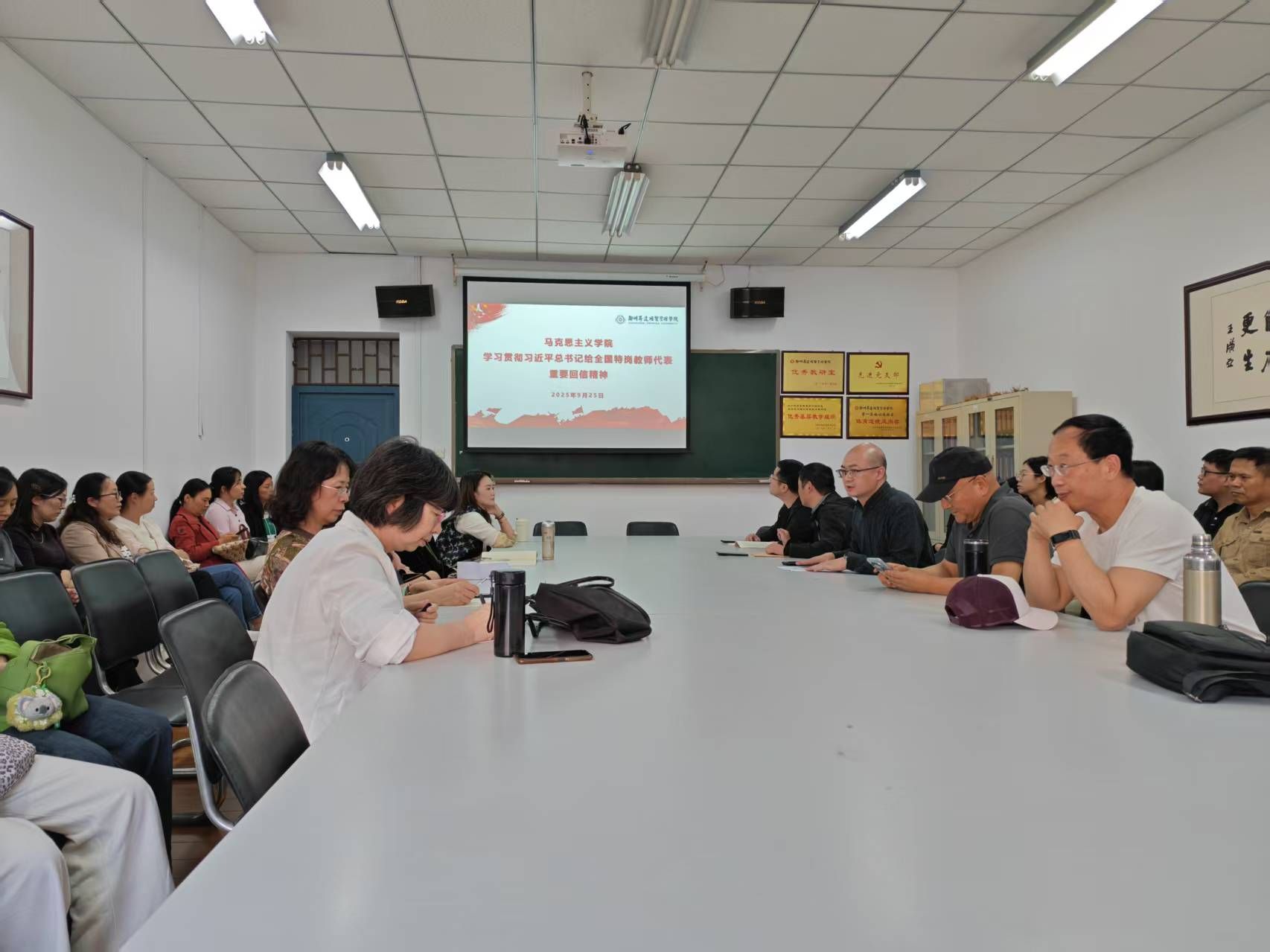 2025年9月25日下午,马克思主义学院组织全体教师深入学习贯彻习近平总书记给全国特岗教师代表重要回信精神,旨在激励全体教师坚守教育初心,为建设教育强国贡献力量。