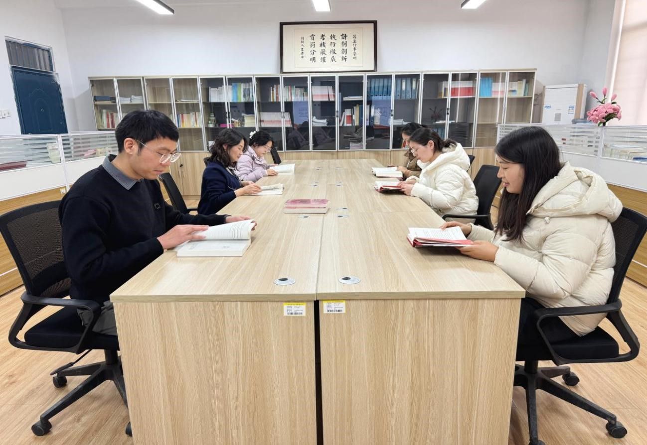 在党史书籍研读分享环节,教研室提前挑选购买《苦难辉煌》、《伟大从此开始》、《从一大到二十大》等党史书籍,党员教师们进行学习研读并分享读书心得。李媛哲老师聚焦党史中的重要历史节点,分享了自己对 “初心使命” 的理解;王诗雨老师结合概论课程教学,提出要将党史故事融入课堂,让学生在学习中感悟党的伟大历程;朱瑞瑞老师从革命先辈的奋斗故事中汲取精神养分,表示要以更加饱满的热情投入到教学和科研工作中。